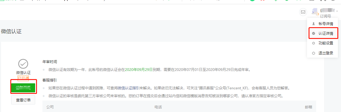 可點(diǎn)擊微信公眾平臺右上角 認(rèn)證詳情繼續(xù)公眾號認(rèn)證(認(rèn)證未成功前不能獲取公眾號的二維碼,注!!此處過程中需要下載微信認(rèn)證申請公函,需要蓋公章,如單位公司里面申請使用公章過程復(fù)雜,請?zhí)崆皽?zhǔn)備好公章)