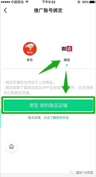 4.選擇微店,點(diǎn)擊綁定我的微店店鋪