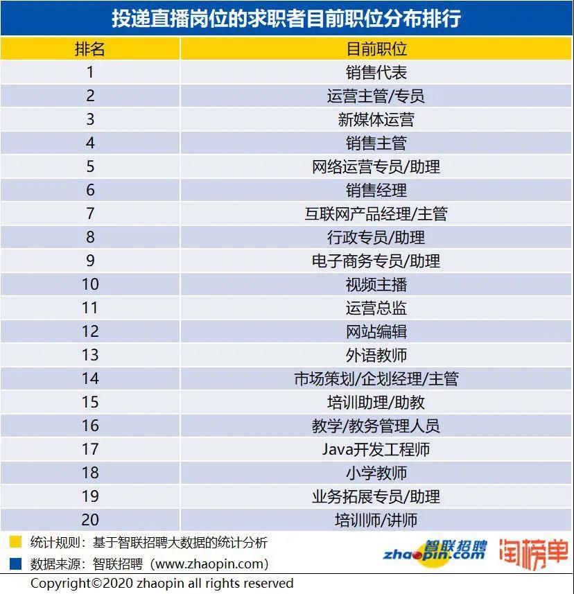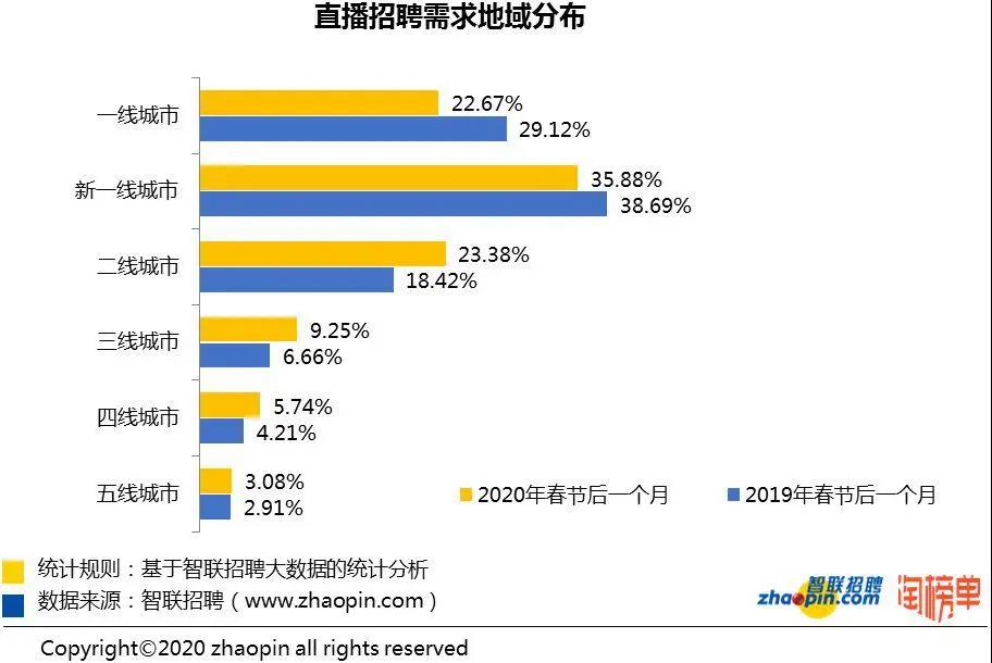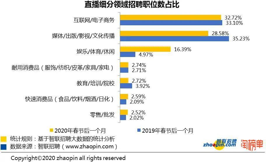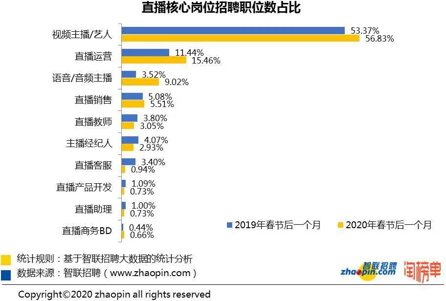 近日,智聯(lián)招聘攜手淘榜單共同發(fā)布的《2020 年春季直播產業(yè)人才報告》顯示,